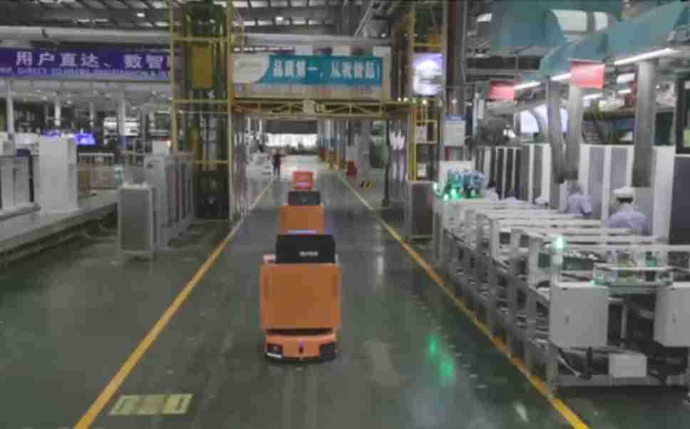 为车载冰箱物流配送打造的智能解决方案,,,,包含产中物流通过潜伏举升AMR搬运至线边,,,,产后成品物流智能仓储,,流程包含产中物流智能齐套入库,,线边安灯叫料AMR智能配送至线边,,,成品入库、、、、出库,,通过无人堆高车机器人,,,,智能仓储管理替代人工作业管理,,,实现更高存储、、、、更高效率、、、、更具柔性化的解决方案。。。。